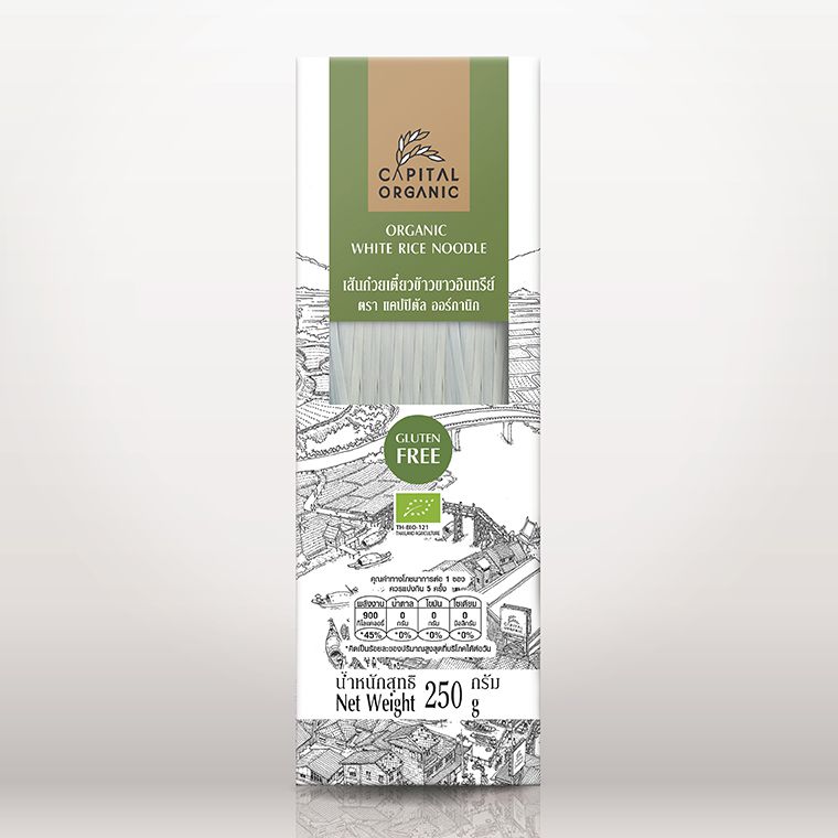 เส้นก๋วยเตี๋ยวอินทรีย์ ผลิตจากข้าวอินทรีย์คัดพิเศษ เส้นเหนียว นุ่ม ไม่ใส่วัตถุกันเสีย ปราศจากสารฟอกขาว ปราศจากกลูเตนที่เป็นสารก่อภูมิแพ้